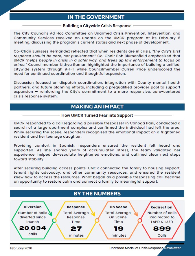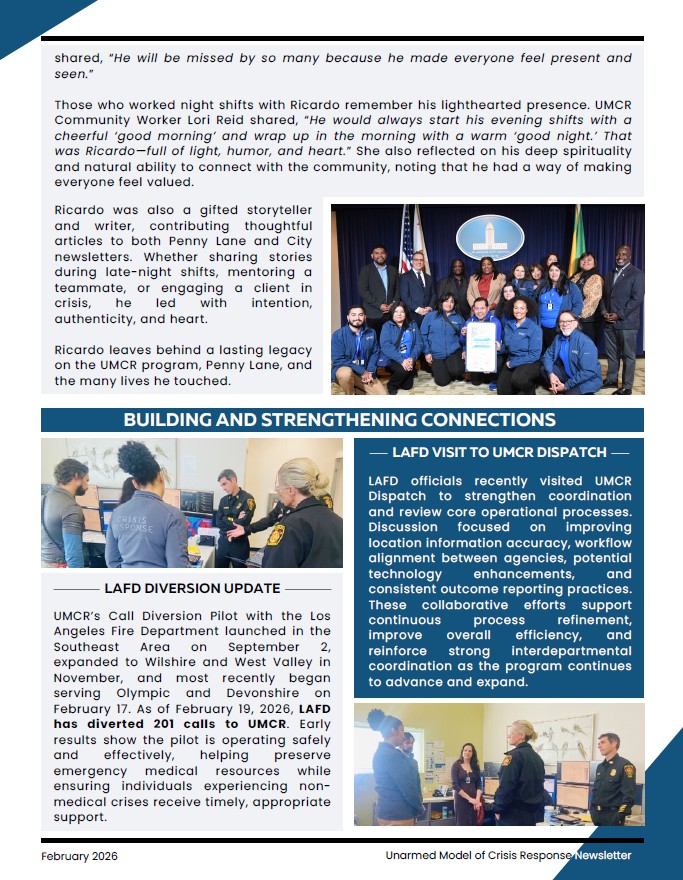 The UMCR team recently responded to a call involving a Hispanic male in his mid-50s who had recently become unhoused and was seeking assistance with shelter placement within the San Fernando Valley. When the team connected with the individual, they learned that he was actively attending medical appointments in the area and hoped to remain close to his healthcare providers. While shelter availability within the Valley is often limited, the UMCR team immediately began working to identify possible options and provide support.